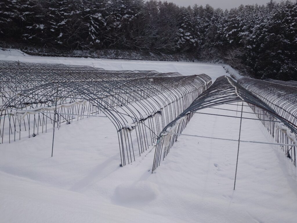 反対側の道が毎年崩れてきて年々細くなっていくので、思い切って1.5mから2mくらいハウスを短くしました。